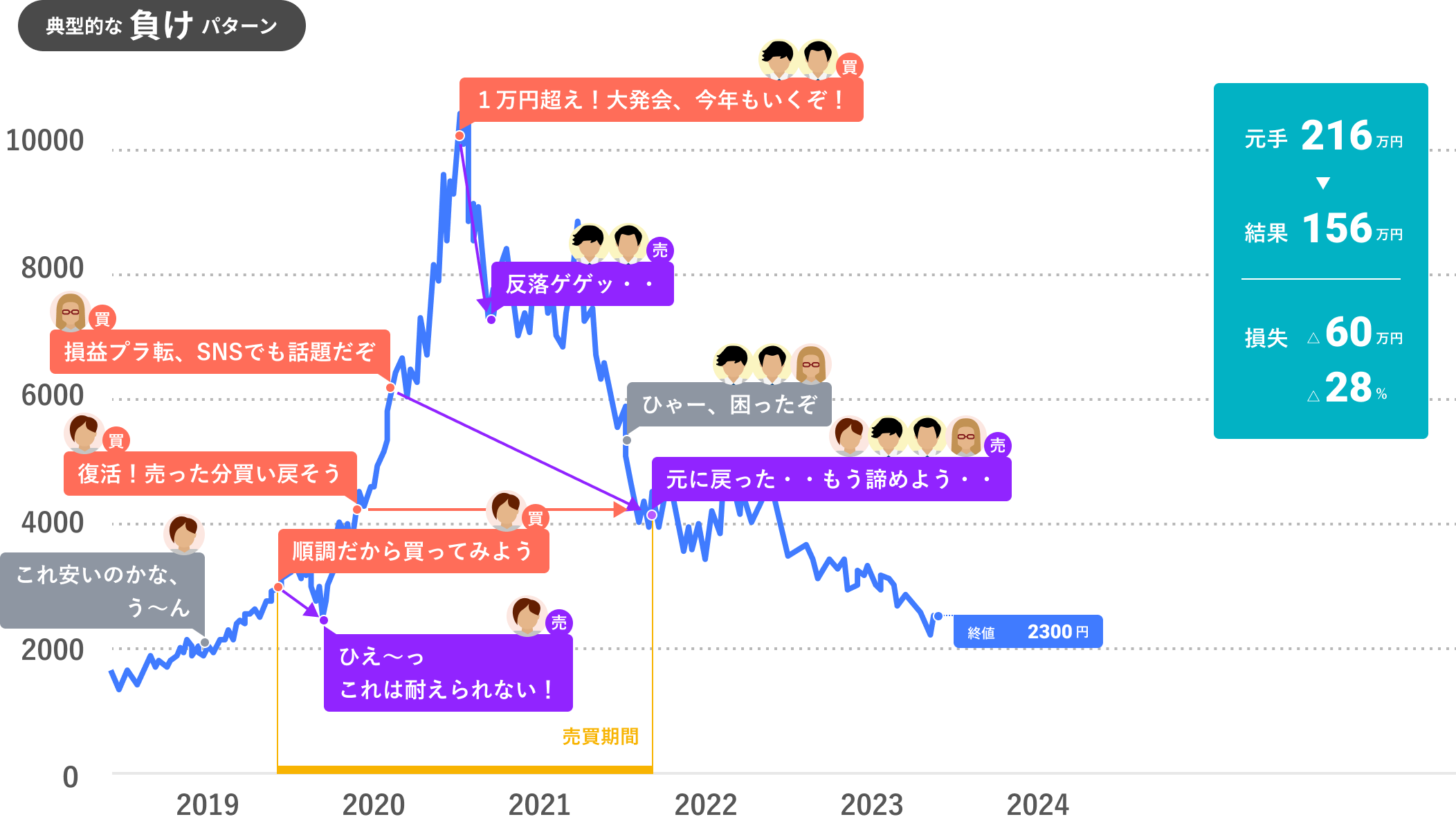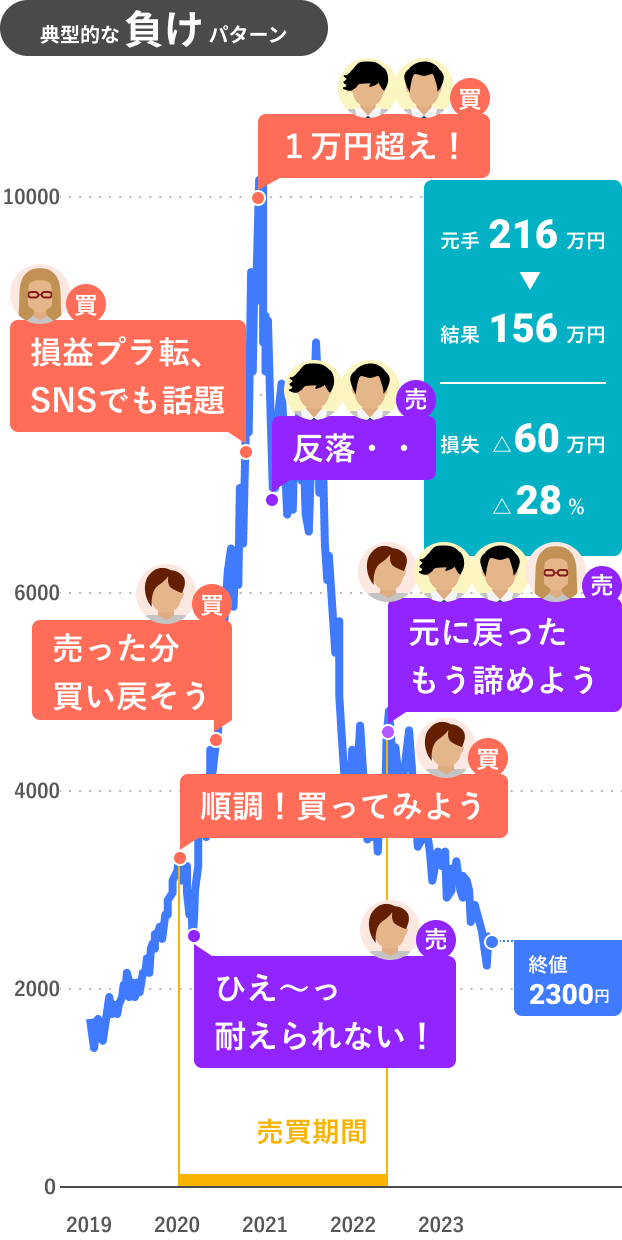 長期投資なのに、株価チャートに振り回されて高値掴み。短期投資と同じような判断をしていてはダメなのでは?
