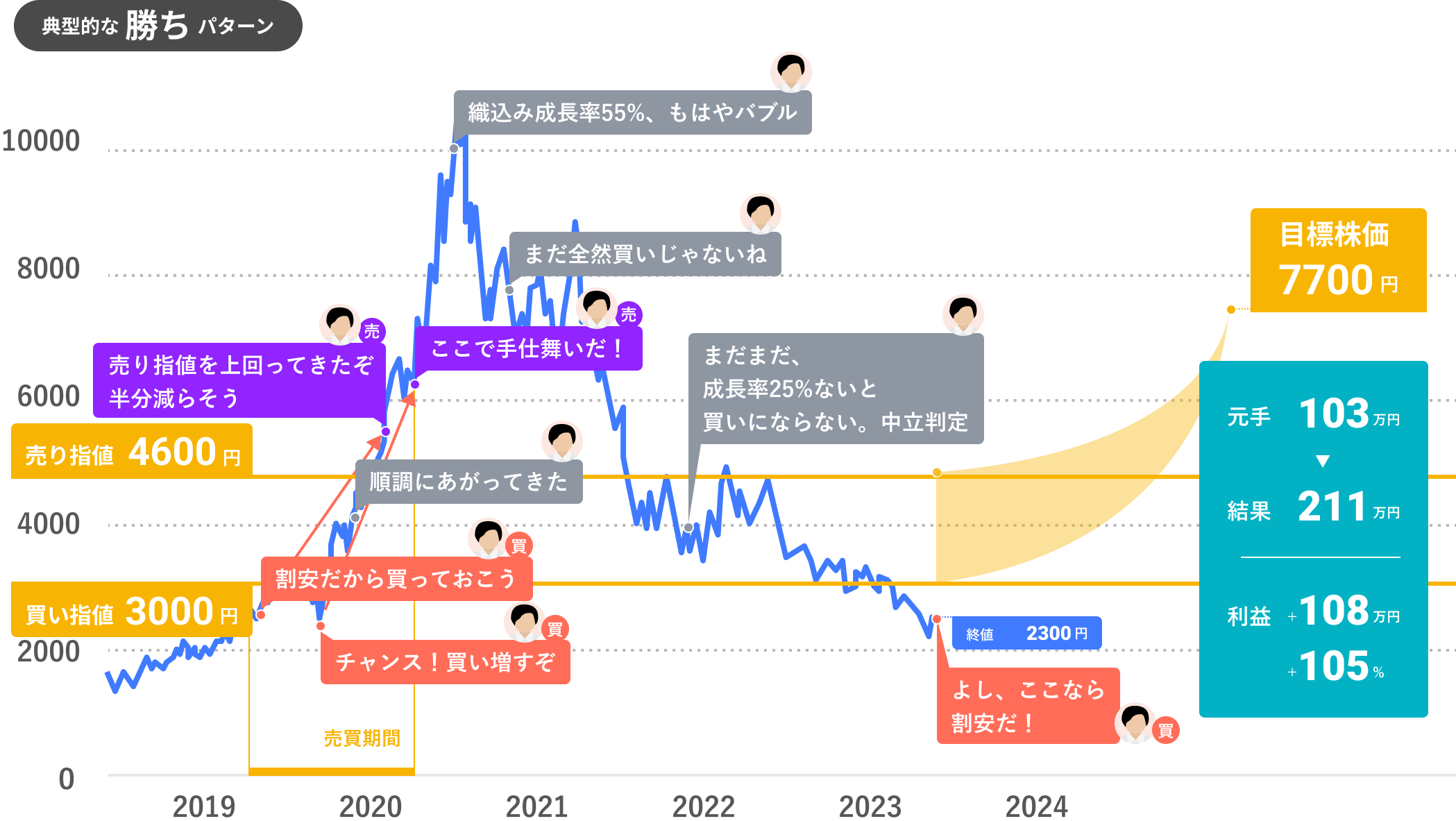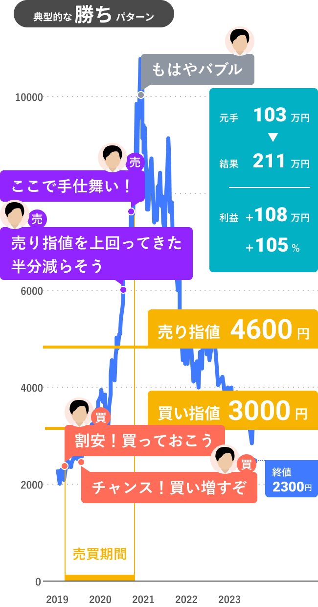 勝ちパターンとは、「買うべき価格」の下で買い、