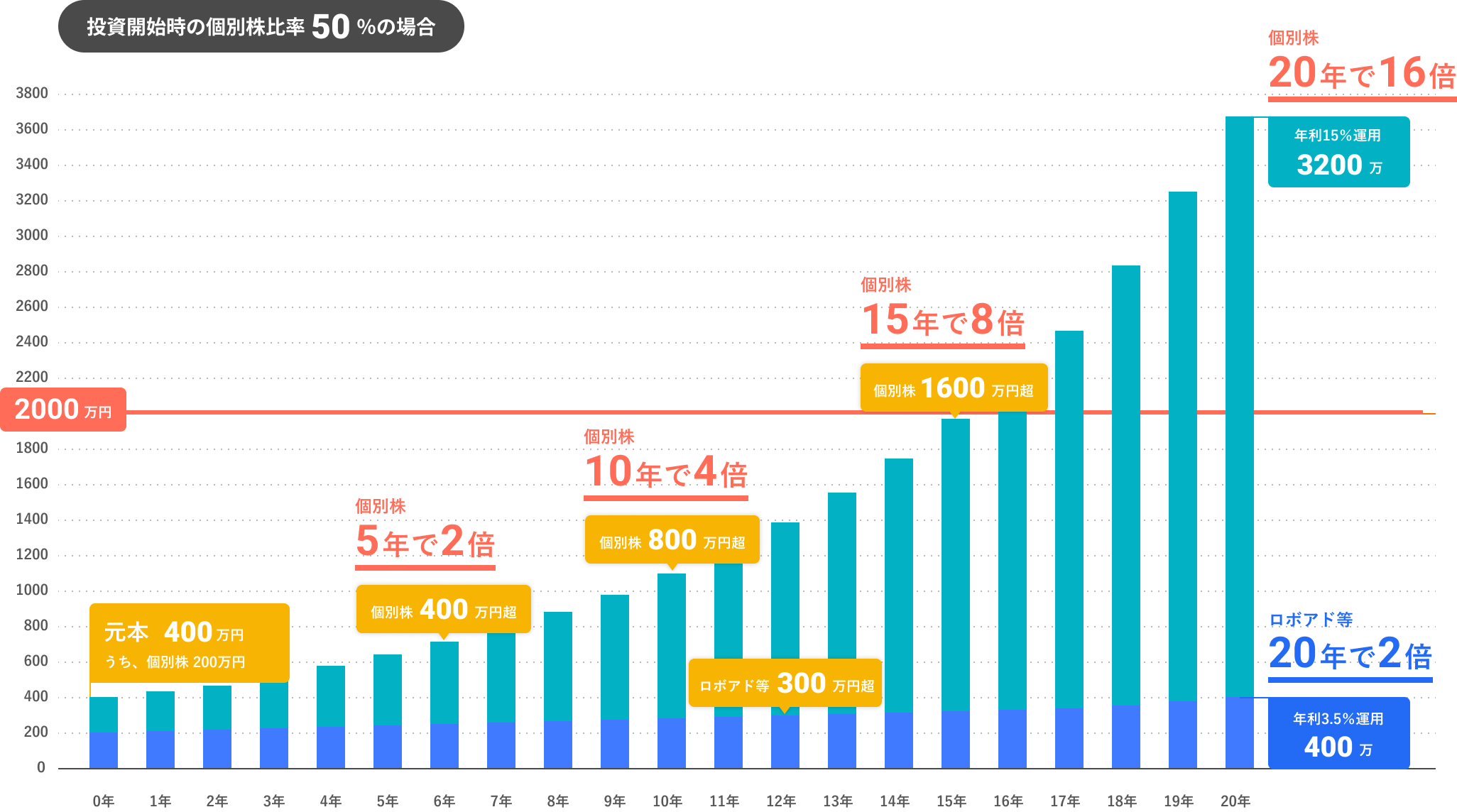 あなたに合った資産構成で、2000万円問題を解決へ。成長投資枠は、リターンの大きな資産に。